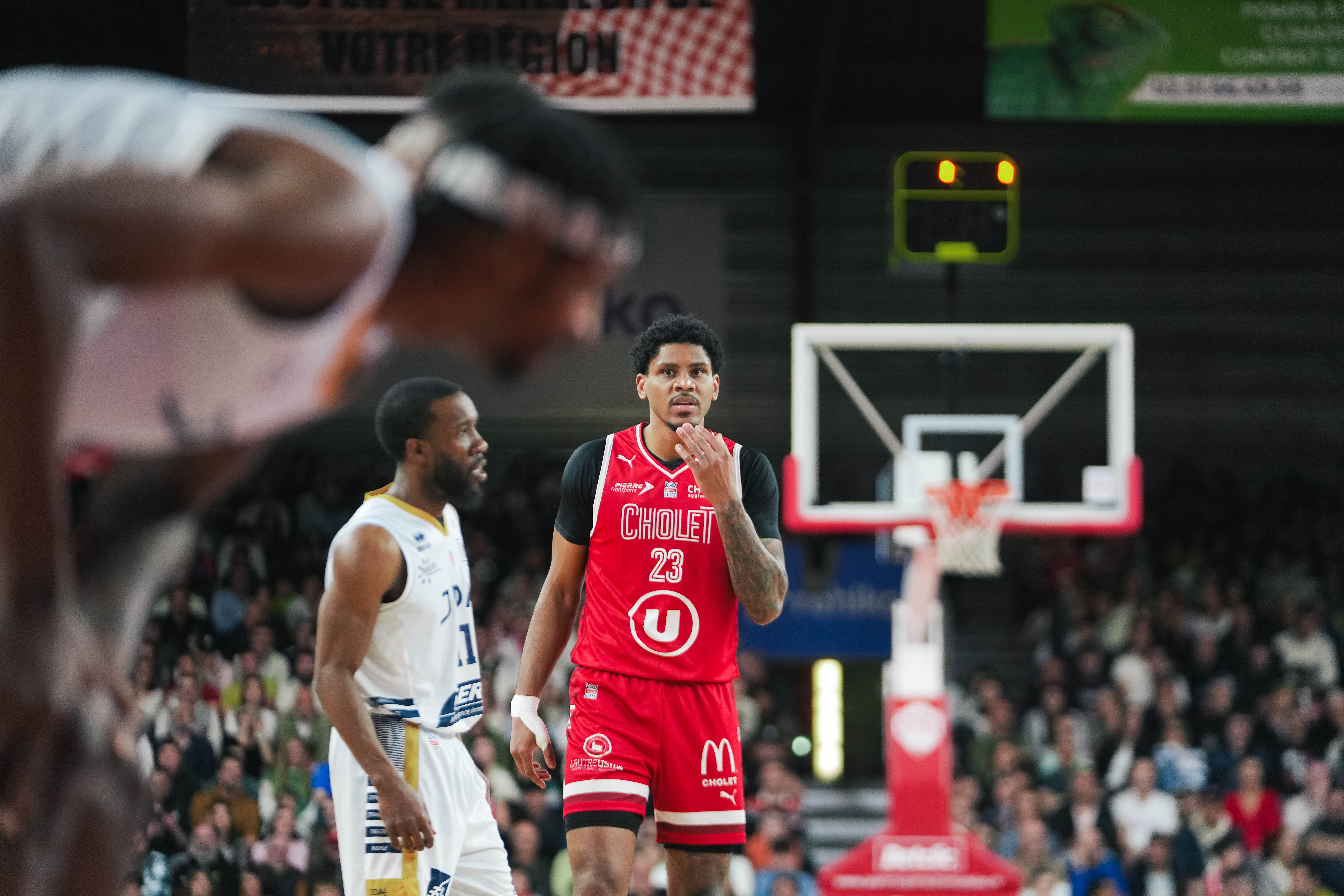 Il y en a un qui commence le match sur les chapeaux de roue, c'est Chibuzo Agbo. En 2'30, il score 9 points à 2/2 derrière l'arc et 3/3 aux lancers francs. Dès leur rentrée, Nathan De Sousa et Noah Locke, auteur d'une performance exceptionnelle contre Le Mans la semaine dernière, se mettent au diapason. Cholet mène rapidement au score (14-6, 4'). Les Choletais baissent un peu en intensité pendant quelques minutes et n'y arrivent plus en attaque, jusqu'au second passage de l'artificier Agbo qui va de nouveau allumer la mèche (14 points pour lui en 5 minutes de jeu). A l'initiative de la bonne passe de CB, c'est aussi Mohamed Diarra, qui vient intercepter deux fois la balle. La seconde va donner un gros dunk à Gérald Ayayi au-dessus de la défense dijonnaise (22-13). En fin de quart-temps, les joueurs des Mauges vont essayer de solliciter Qudus Wahab à l'intérieur, malheureusement en délicatesse sur la ligne des lancers. 23-15.