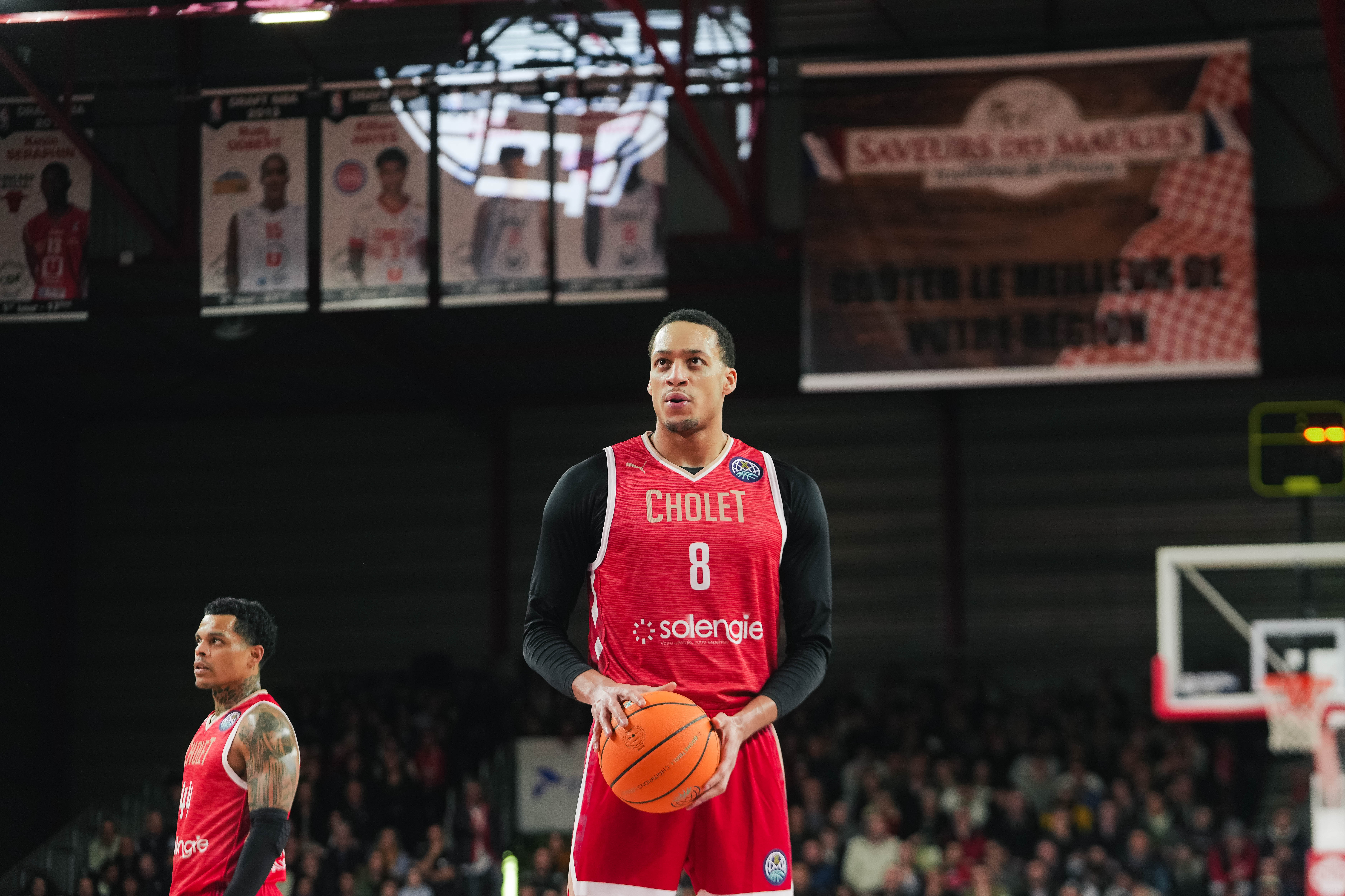 Sur le début de match, on sent des Choletais très impliqués, notamment défensivement avec deux charges provoquées coup sur coup. De l'autre côté du terrain, Gérald Ayayi aligne à trois points puis près du cercle quand Chibuzo Agbo se met en route à mi-distance (7-2). La Meilleraie, déjà bien chauffée par l'entrain des joueurs, va rugir comme un seul homme lors de l'énorme dunk de Jamuni McNeace. Après quelques minutes un peu plus difficiles, le pivot américain regagne le terrain et multiplie les actions positives, avec 6 points dont un 2/2 aux lancers francs. Après une belle défense, Gérald Ayayi court et aperçoit Mohamed Diarra prêt à tout écraser dans le cercle… la passe est millimétrée et le dunk spectaculaire. Les titulaires permettent à Cholet de reprendre du champ en fin de quart-temps. 25-16.