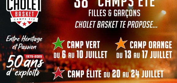 Les inscriptions pour les 38èmes Camps Été de Cholet Basket ouvriront le jeudi 18 décembre à partir de 10h.